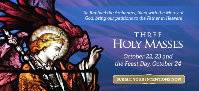 Please present all your intentions, to be included in three Holy Masses: October 22, 23 and the Traditional Feast Day Holy Mass of St. Raphael on October 24.
